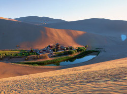 Pagi ini setelah sarapan Anda akan melanjutkan perjalanan menuju Liuyuan dengan bullet train (2nd class). Kemudian menuju Dunhuang untuk mengunjungi Ringing Sand Mountains (Mingsha Mountain) - padang pasir yang dikatakan bisa mengeluarkan suara seperti suara drum. Setelah itu Anda akan diajak mengunjungi Crescent Lake (Moonlight Spring) untuk melihat padang pasir luas dimana terdapat danau yang bentuknya menyerupai bulan sabit dengan airnya yang jernih.Tak ketinggalan Anda akan diberikan waktu bebas di Shazou Night Market, dimana Anda bisa membeli souvenir dan mencicipi makanan lokal disana. Selesai tour menuju hotel untuk istirahat.