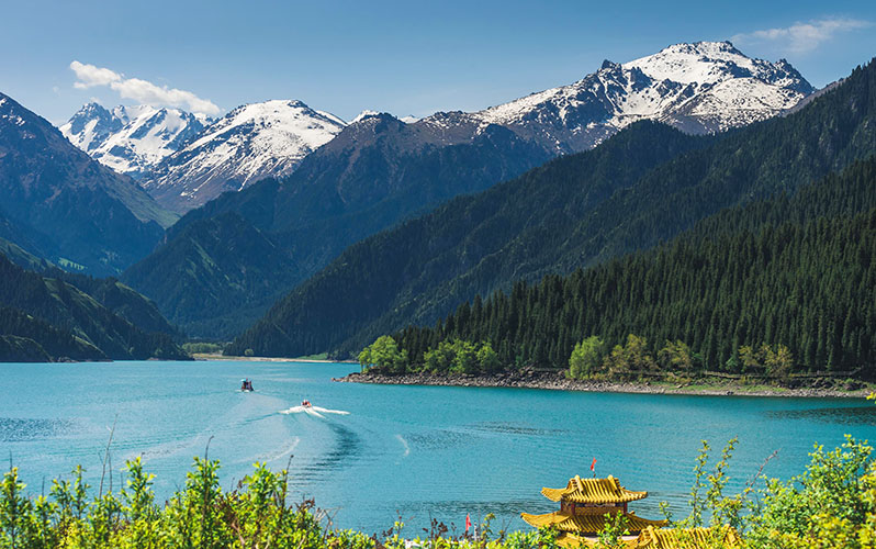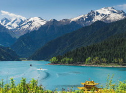 Setelah bersantap pagi dengan bus wisata menuju Tianshan Mountain (termasuk shuttle) dan Tianchi Lake (termasuk perahu) disebut juga "Heavenly Lake" adalah danau biru jernih yang terletak di sisi utara Pegunungan Bogda Shan di jajaran Tian Shan. Setelah itu anda akan diberikan waktu bebas di Wanda Mall.