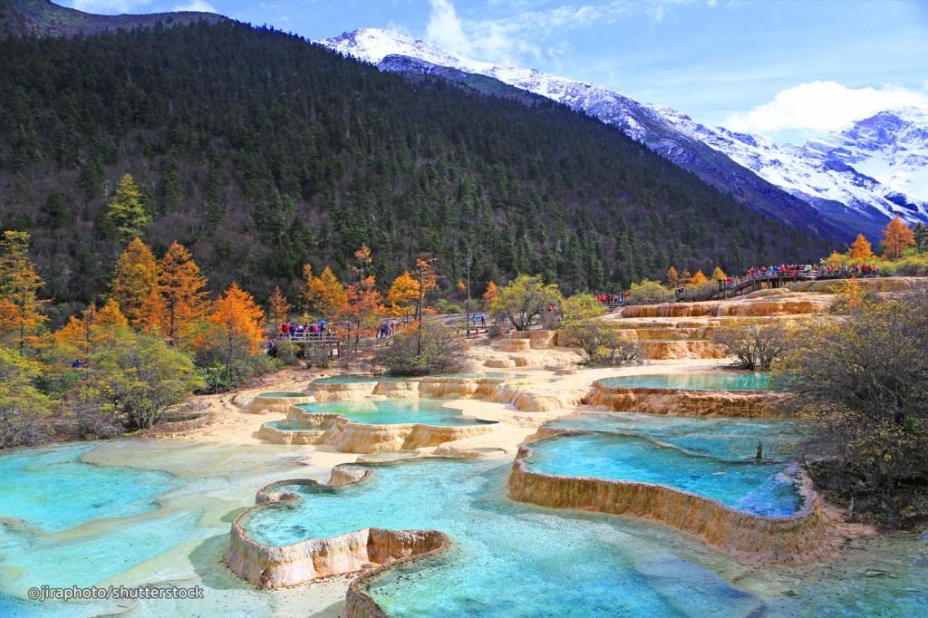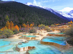 Hari ini menuju Songpan / Jiuzhaigou dengan bullet train (2nd class). Setibanya di Jiuzhaigou, Anda akan diantar menuju Huanglong Scenic Area (tidak termasuk cable car & battery car) yang terkenal begitu indah dan merupakan salah satu Unesco World Heritage, dimana merupakan lanskap dari ribuan danau yang meliuk liuk seperti tubuh naga, Anda bisa melihat banyak kolam bertingkat yang terbentuk dari batu kapur yang diendapkan oleh mata air mineral alami.