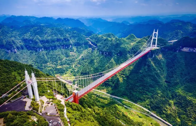 Setelah santap pagi, Anda akan melanjutkan perjalanan menuju Zhangjiajie. Dalam perjalanannya Anda akan melewati Kota Jishou untuk mengunjungi Aizhai Bridge Scenic Area (termasuk shuttle bus) yang merupakan salah satu jembatan gantung spektakuler di Provinsi Hunan yang melintasi lembah di daerah pegunungan, Anda akan menuju Heavenly Observatory Deck untuk menyaksikan panorama Dehang Canyon dan jembatan Aizhai. Perjalanan dilanjutkan dengan berjalan di Cliffside Plank Road serta menaiki sightseeing elevator. Jika memungkinkan, Anda juga berkesempatan untuk merasakan pengalaman unik berjalan di atas jembatan gantung Aizhai. Setelah itu, acara tour dilanjutkan menuju Morong Miao Village, desa yang kaya akan adat istiadat suku Miao yang dikenal sebagai Little Thousand Households. Selesai tour, menuju Zhangjiajie untuk bermalam.